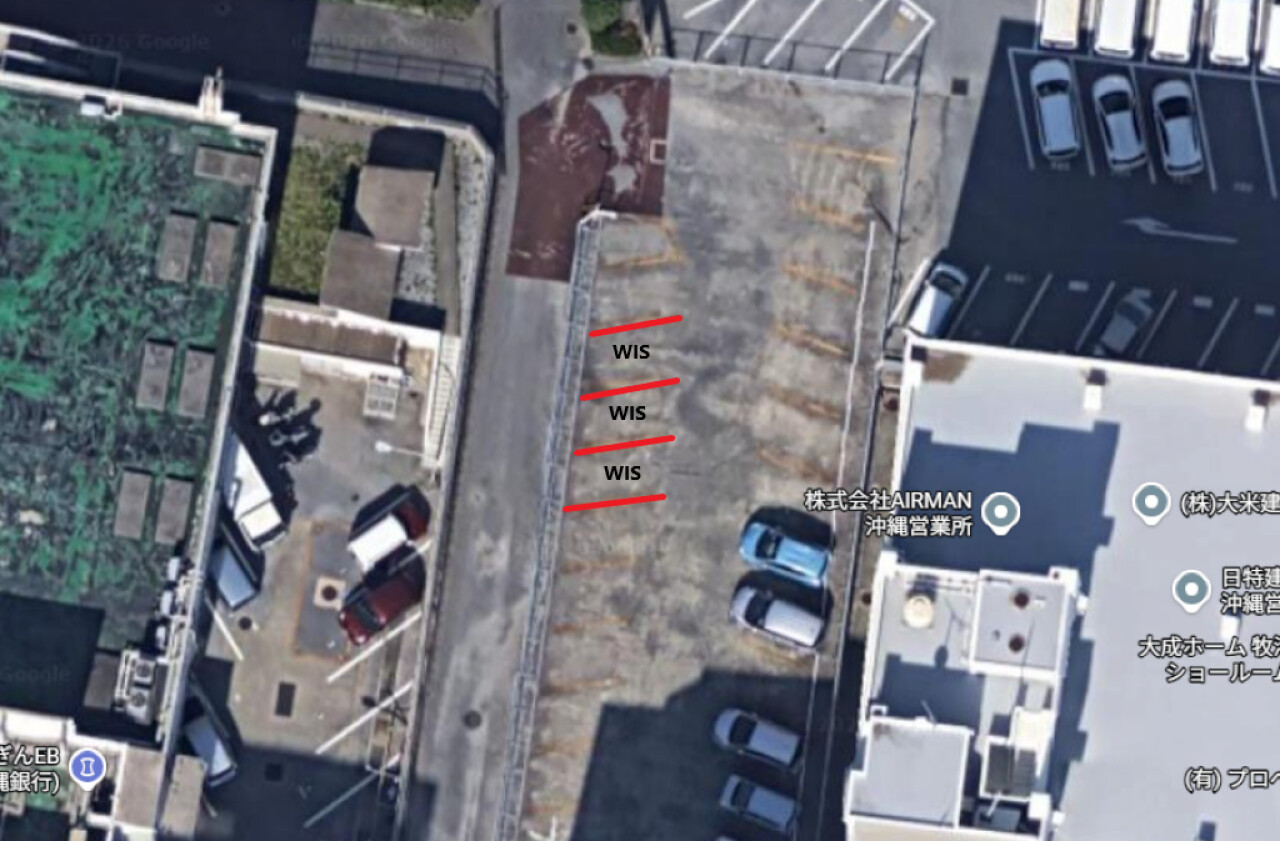 那覇方面よりお越しの場合、58号牧港歩道橋30メートル手前、琉薬商事ビルと沖縄銀行事務センター間の路地を入り、商事ビル裏の駐車場2階部分入り口傍となります。(弊社名プレートのスペースへ駐車下さい。)